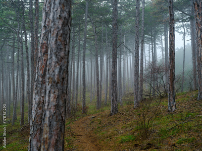 misty autumn forest in the morning