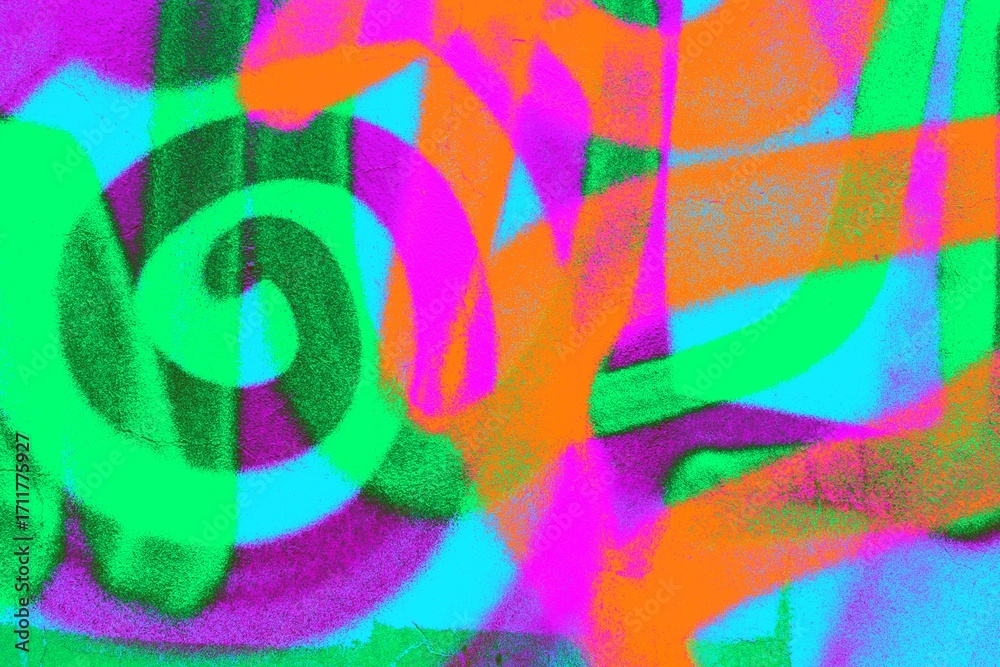 Graffiti pattern in vibrant neon green, pink, orange hues. Retro 80s, Y2K style, fluorescent glow, dynamic spray art. Backgrounds, texture, digital art, modern 90s, 2000s, Y2K creative visuals.