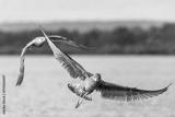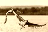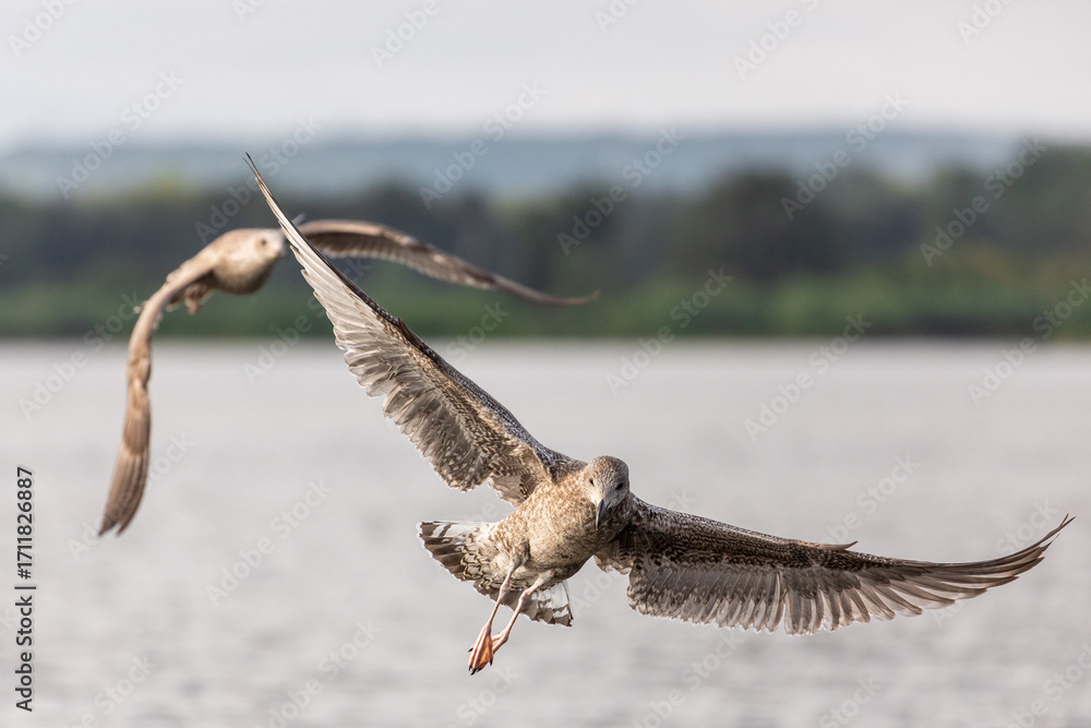 Seagull flying above water near Szczecin Lagoon in Poland.