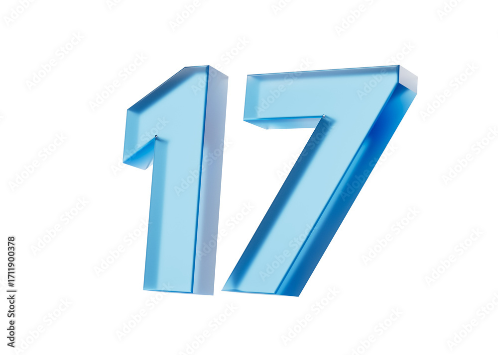 3d Glossy Blue number 17 or Seventeen with a gradient of blue shades. 3d illustration