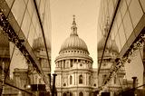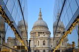 Breathtaking sunrise over Saint Paul Cathedral in London with reflections and holiday lights