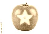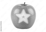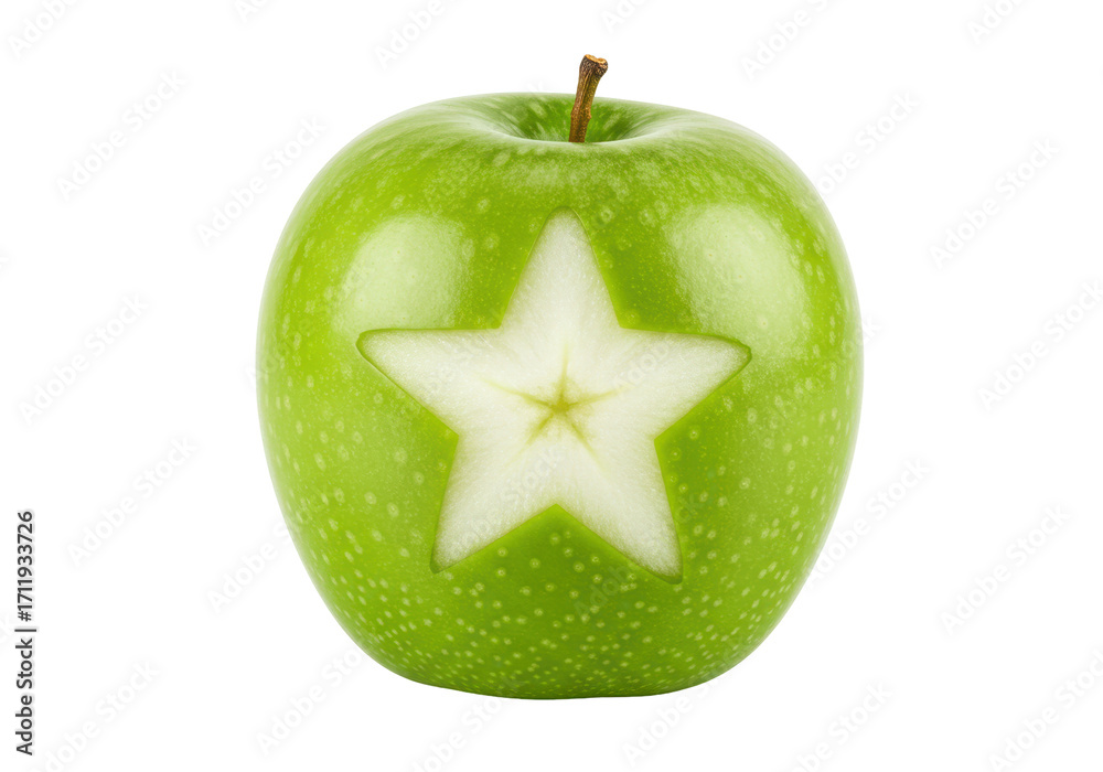 Isolated green apple with star cut out in fruit against uniform backdrop for healthy eating concept