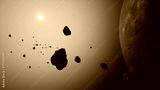 a large cluster of asteroids near an unknown planet