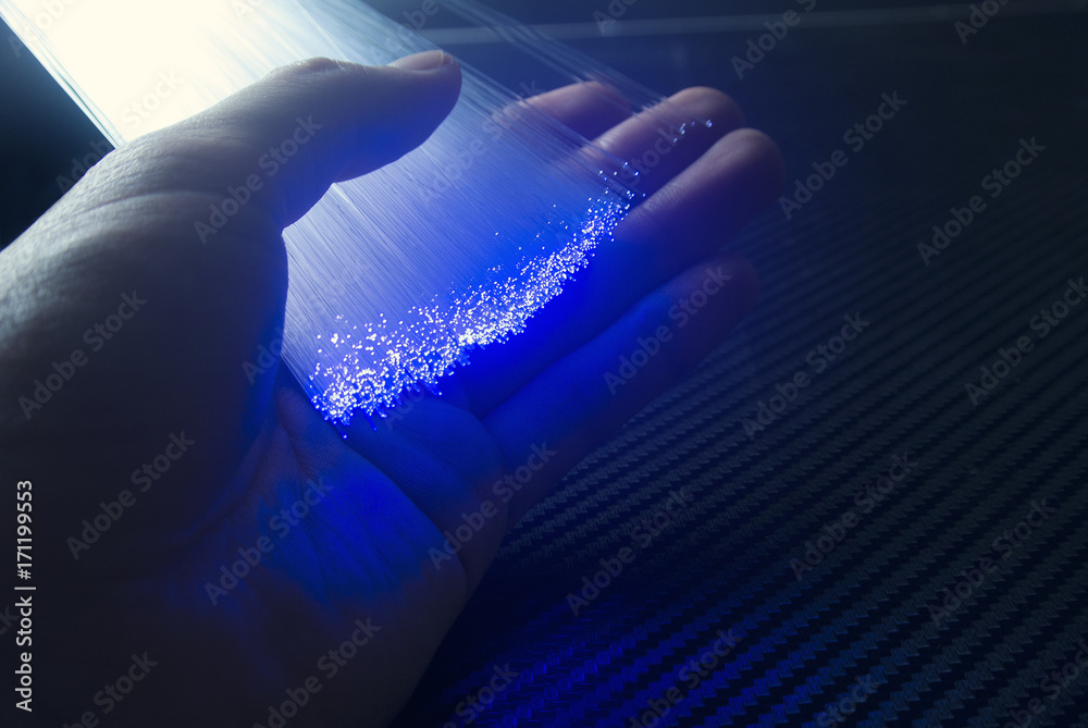 hand pick the network fiber optic with abstract background