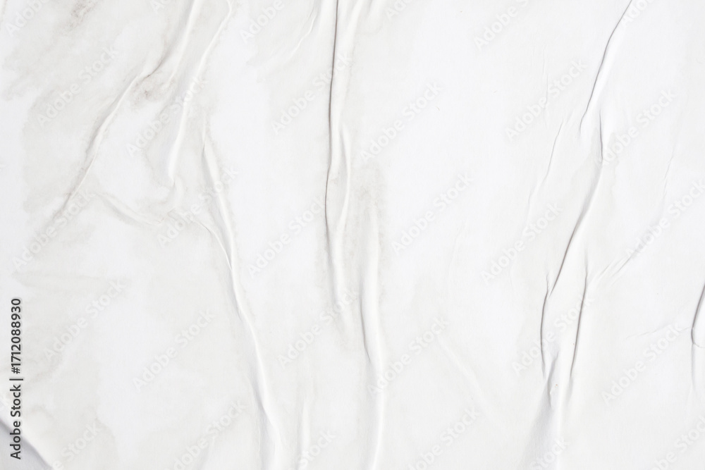 white crumpled and creased glued wrinkled paper poster texture background