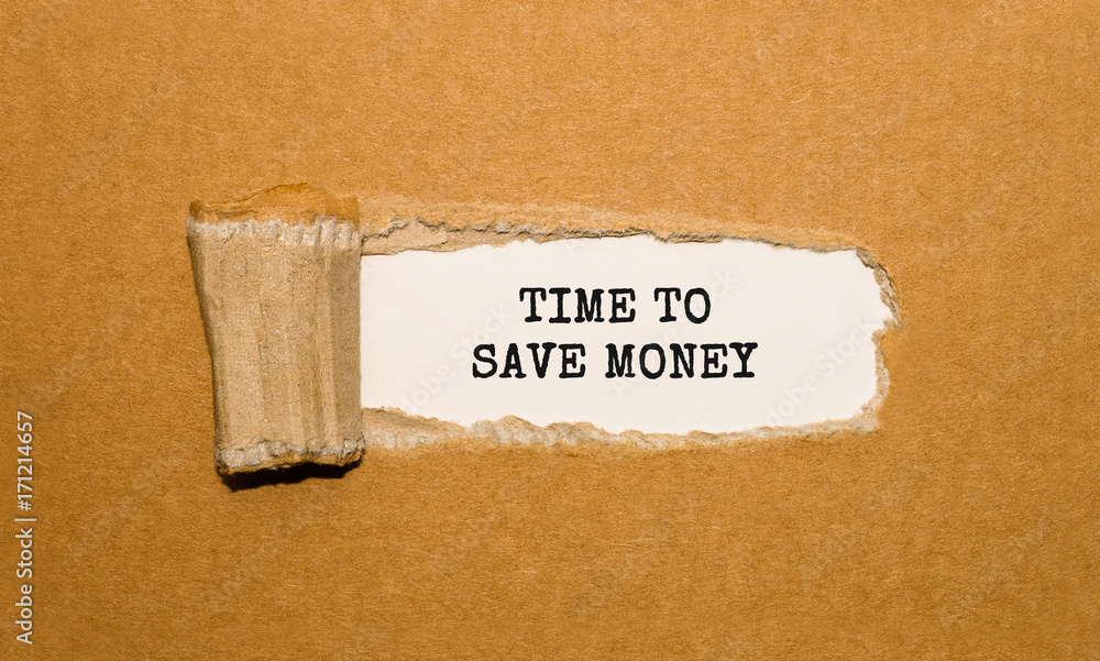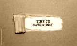 The text TIME TO SAVE MONEY appearing behind torn brown paper