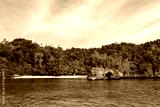 Pirogue on Lia beach, Waleakodi Island, Togian archipelago, Sulawesi, Indonesia