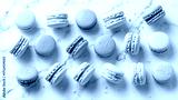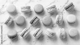 A pastel rainbow of delicate macarons arranged on a beautiful marble surface creating a delightful confectionary presentation.