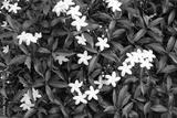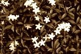 Small white flowers on a green leaf background