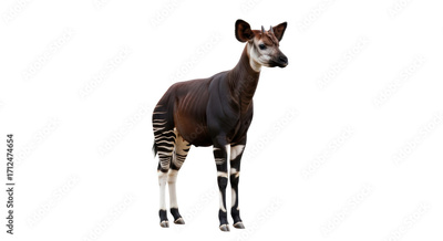 Isolated Okapi standing gracefully looking ahead, a rare and striking creature in full view