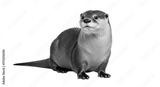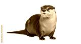 Isolated otter with smooth, brown fur looks up against a neutral backdrop in digital painting