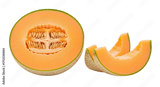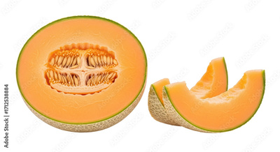 Isolated cantaloupe half with slices ready to eat offers refreshing healthy snack option