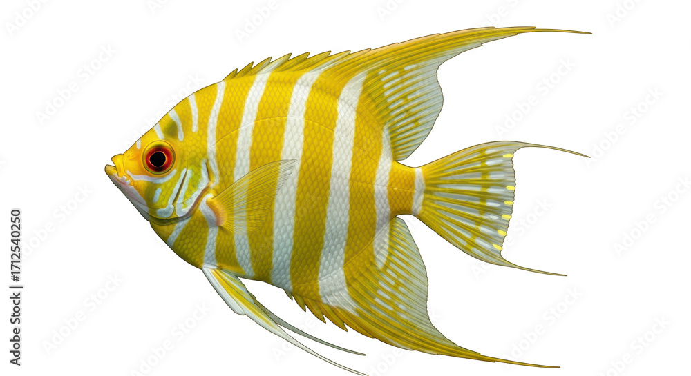 Isolated Gold Angelfish with Yellow Stripes, Bright Tropical Aquarium Fish for Decorative Use