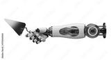 Isolated robotic arm holding a trowel, showcasing futuristic construction technology