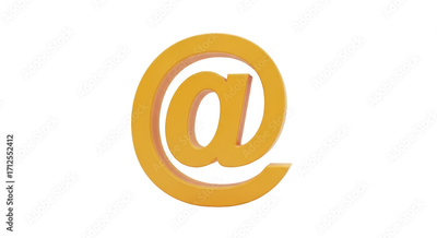 Isolated conceptual rendering of the at sign in gold finish for email, business, internet ideas