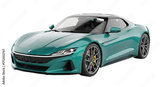 Isolated luxury teal coupe car on a seamless surface, modern automotive design aesthetic