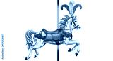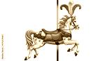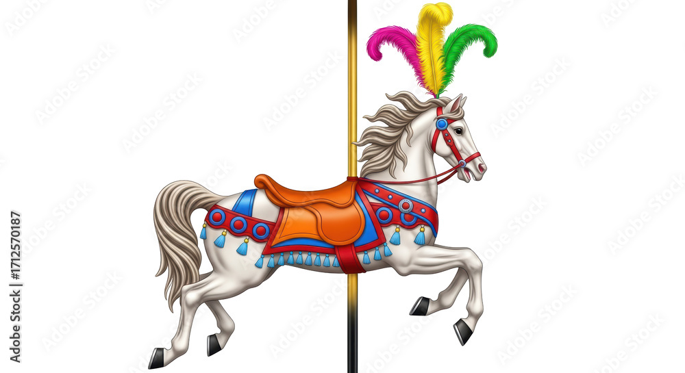 Isolated vintage carousel horse with feathers, carnival theme ride horse for vintage amusement parks