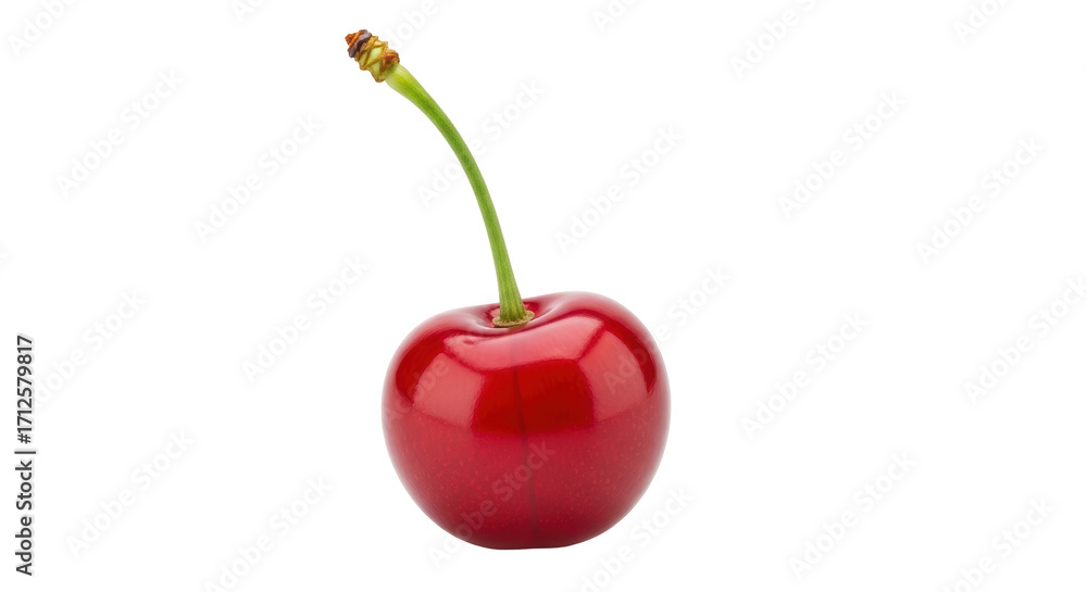 Isolated fresh red cherry with stem ready to eat a natural treat for dessert or snack time