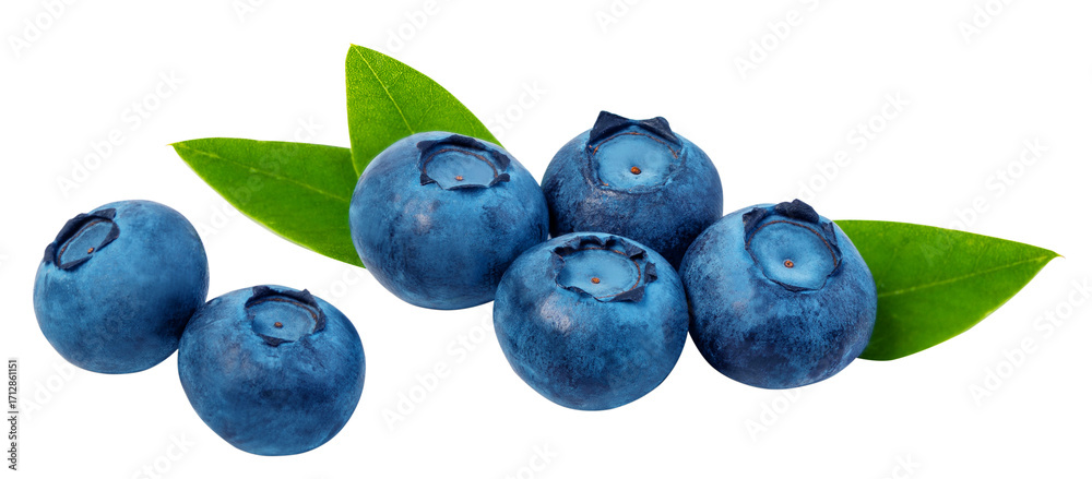 Blueberries and green leaves with transparent background
