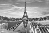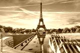 Beautiful sunset view of Eiffel Tower and Trocadero Gardens Fountain, Paris, France