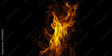 Fiery passion dancing against the darkness symbolizing strength and intense energy in a dynamic blaze against a pure