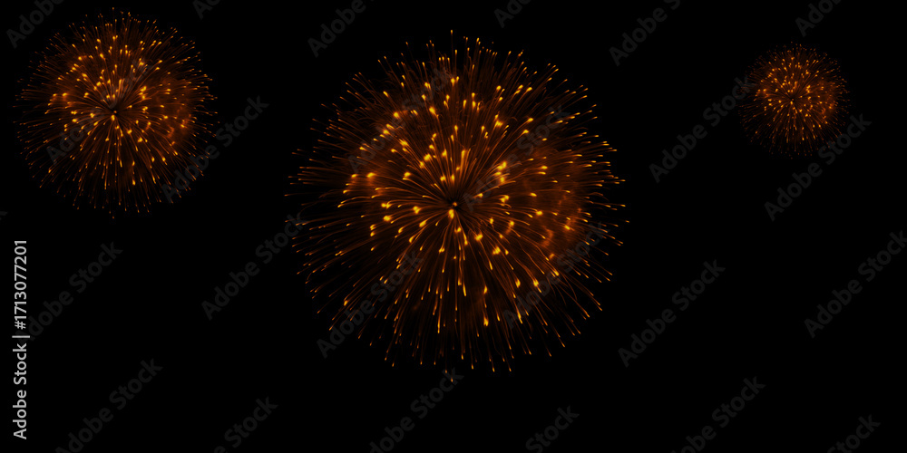 Shimmering golden fireworks paint the night sky with bursts of light celebrating freedom and joy on a black backdrop in
