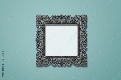 Vintage silver retro picture frame on blue background