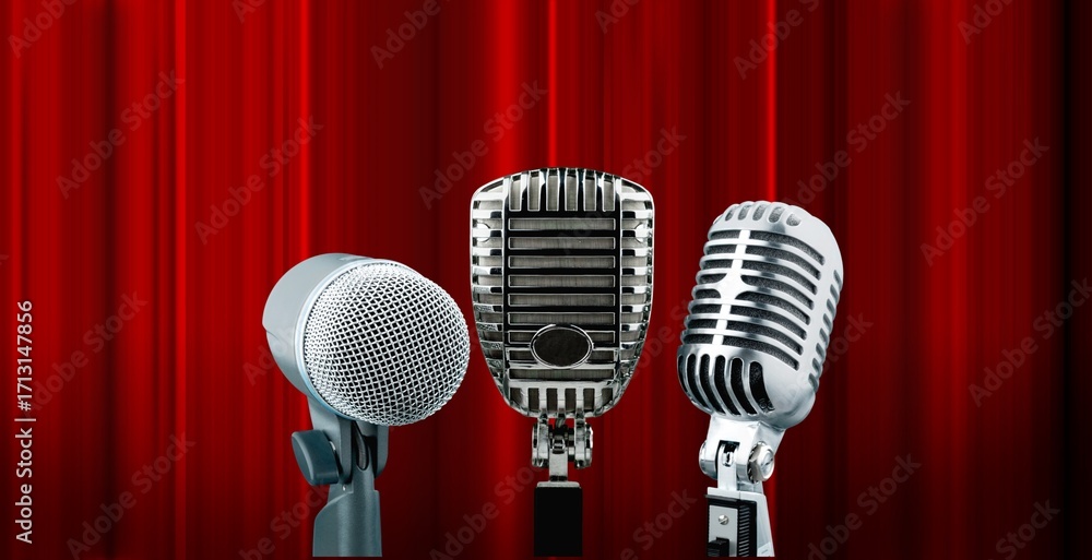 Classic music microphone on stage background