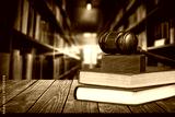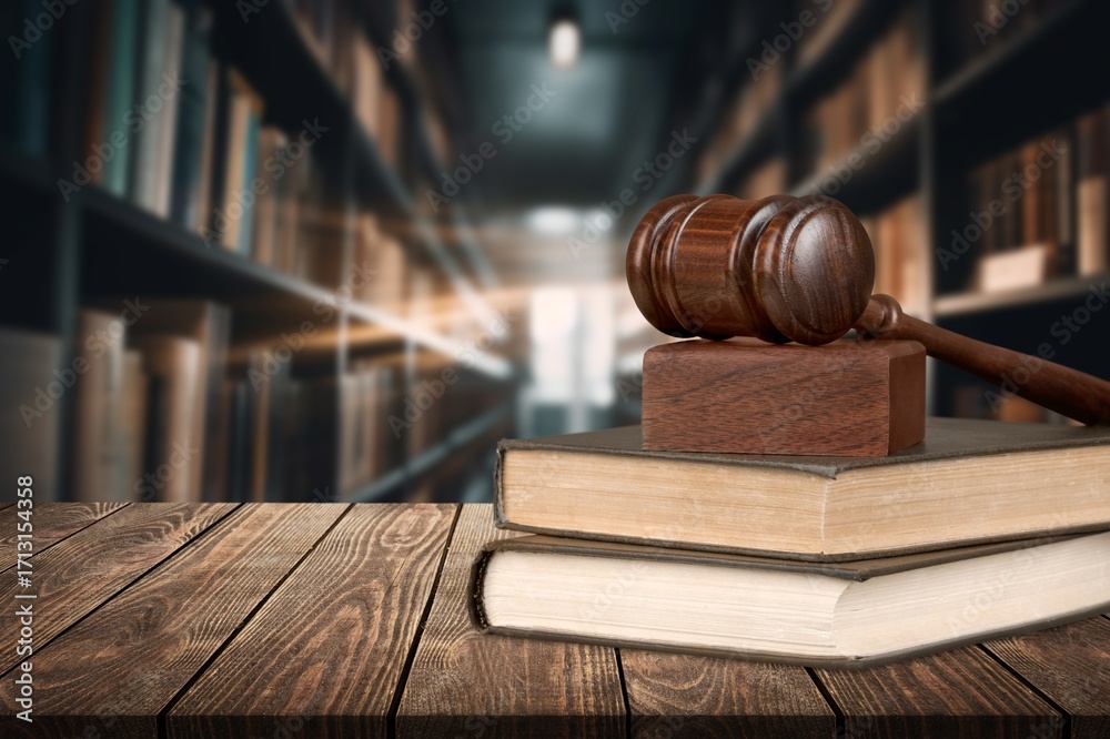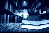 Law education, legal study concept, books in library