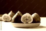 Fresh fig on wooden plate with white and black background, Autumn fruit