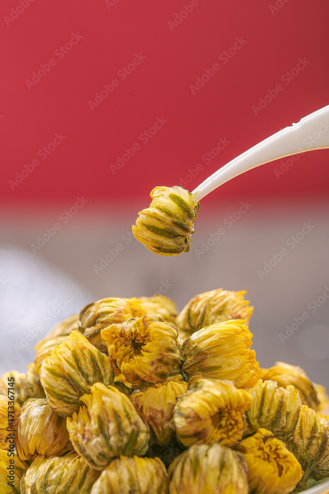 Dried Chrysanthemum Flowers Herbal Tea Ingredient Traditional Chinese Medicine Spoon