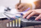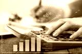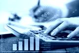 Business person using calculator for tax online