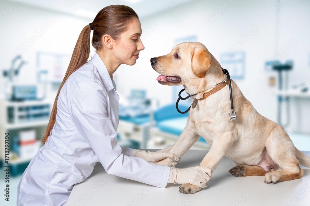 Vet examining pet in modern clinic