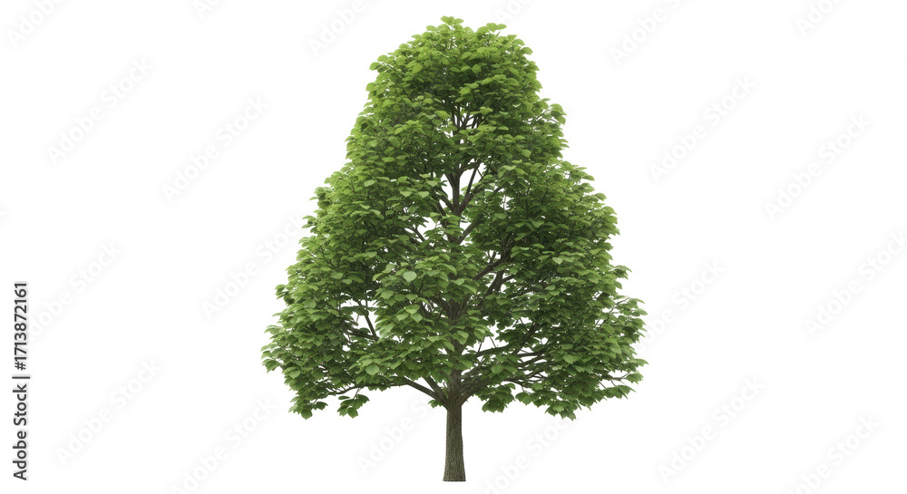 Isolated tree with lush green leaves and a sturdy trunk in a natural setting, landscape