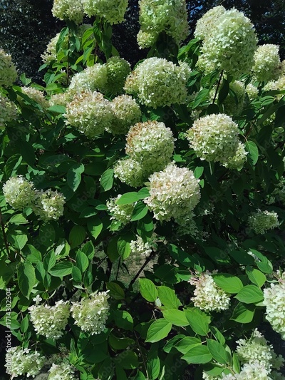 Hydrangea paniculata "Limelight". Natural background. Care of plants and flowers in the garden or in the park
