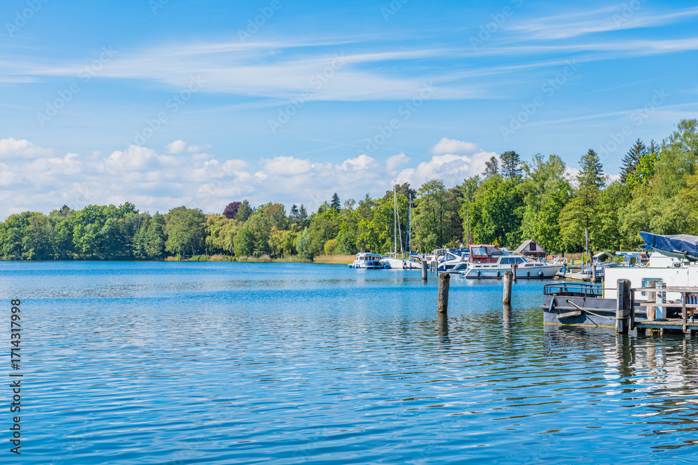 Boats in harbor at Lake Scharmützelsee in Bad Saarow, Germany