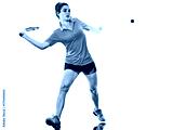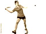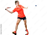one caucasian young teenager girl woman playing Squash player isolated on white background