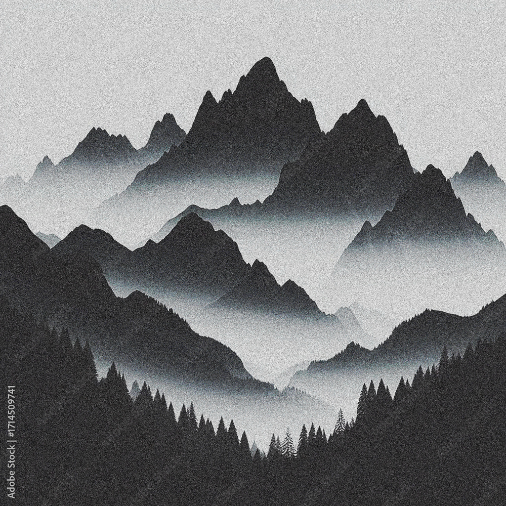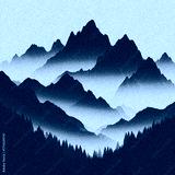 Mountains with grain stipple effect, for grunge collage design. Illustration for vintage banner.
