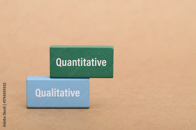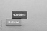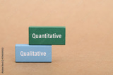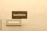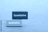 This conceptual image uses colored blocks to differentiate between quantitative (numerical) and qualitative (observational) approaches in research, business, and academic studies.