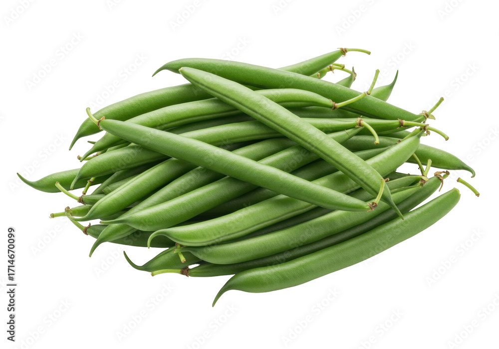 Isolated Pile of Fresh Green String Beans or Snap Beans Ready for Cooking or Eating