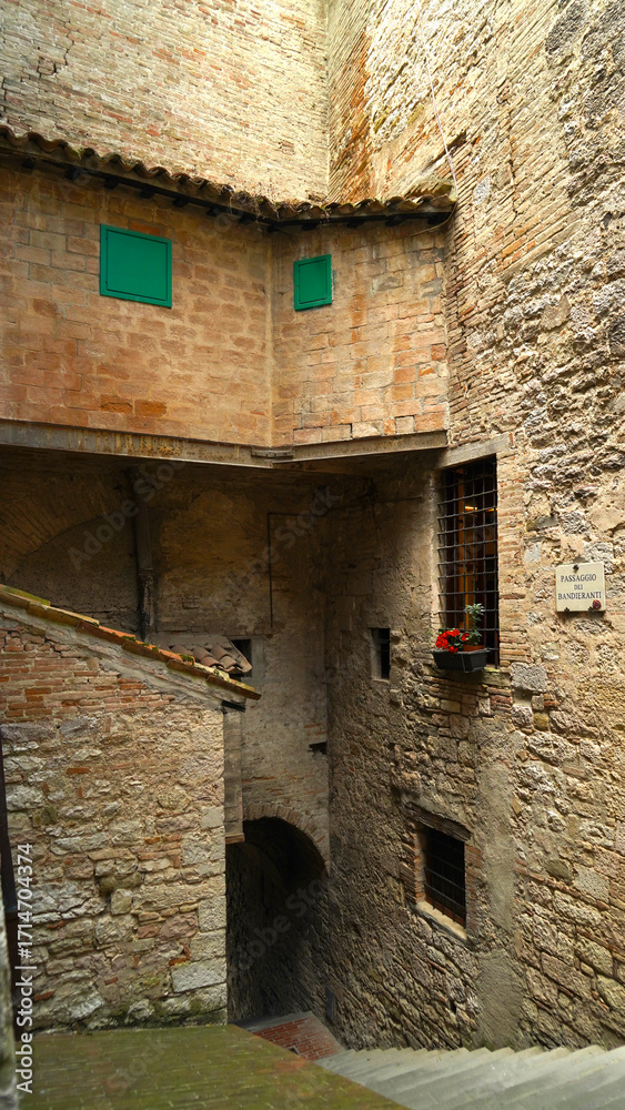 La struttura medievale perfettamente conservata del borgo di Gubbio, Umbria, Italia