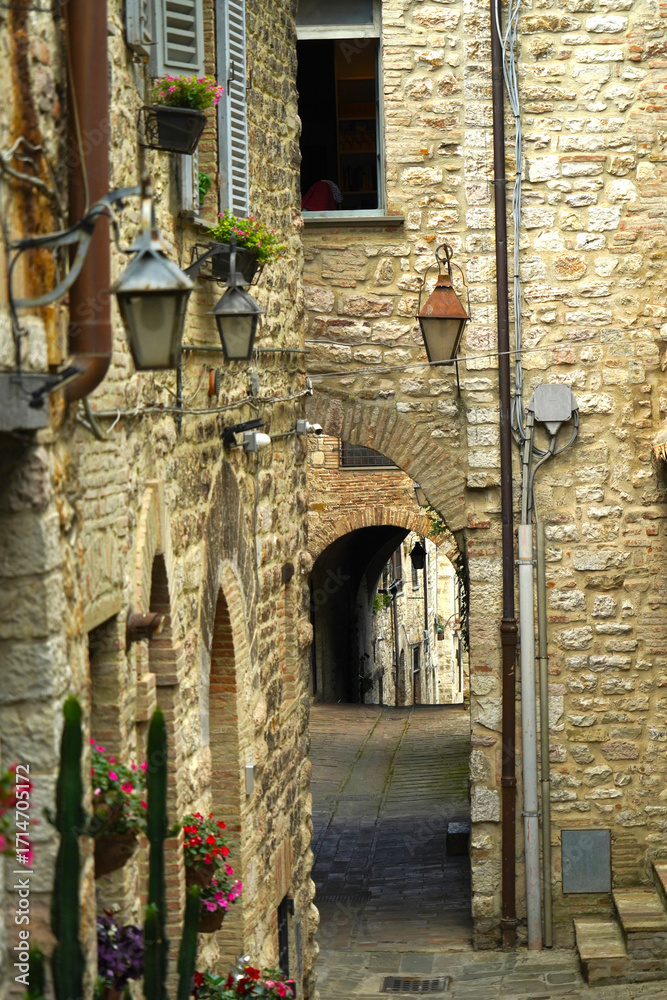 La struttura medievale perfettamente conservata del borgo di Gubbio, Umbria, Italia