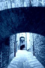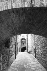 La struttura medievale perfettamente conservata del borgo di Gubbio, Umbria, Italia