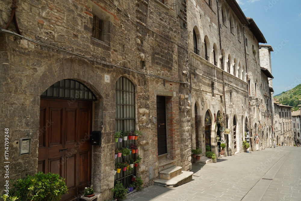 La struttura medievale perfettamente conservata del borgo di Gubbio, Umbria, Italia