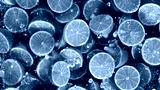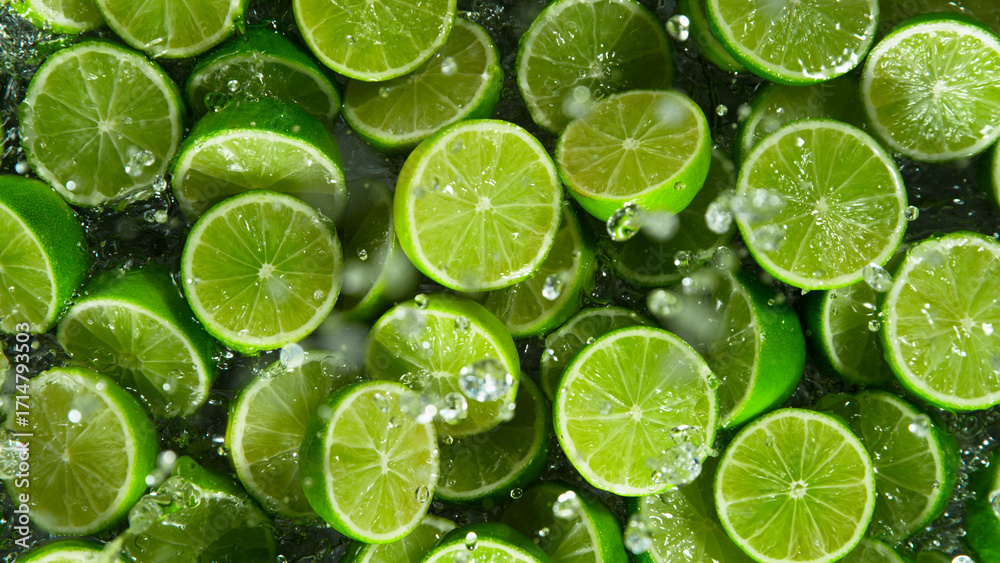 Freeze motion of falling fresh lime fruit into water