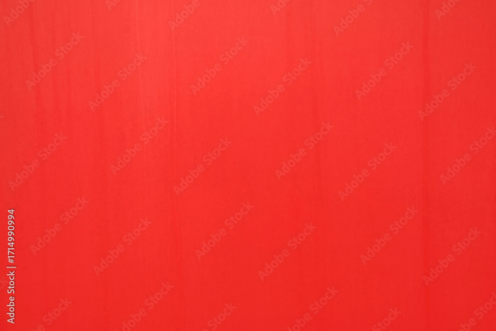Red metallic wall background, texture. Deep-red smooth painted surface. Flat, reddish covering with small, aged spots and paint streaks. Surface with strong red tint. Red backdrop of metal sheathing