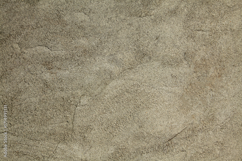 Grey faded wall texture, background. Yellowed cement coating. Gray surface backdrop. Structural and textured plaster with cracks and blackening. Rough, uneven surface in grey color. Ancient cladding