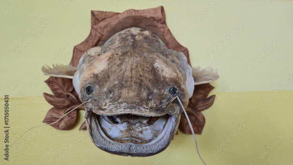 stuffed river catfish on the wall