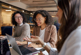A dynamic team discussion occurs in a modern workspace that fosters creativity and innovation among members
