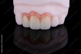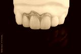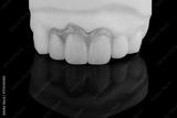 High-quality three dental crowns made of zirconium for fixation to the frontal teeth of upper jaw.